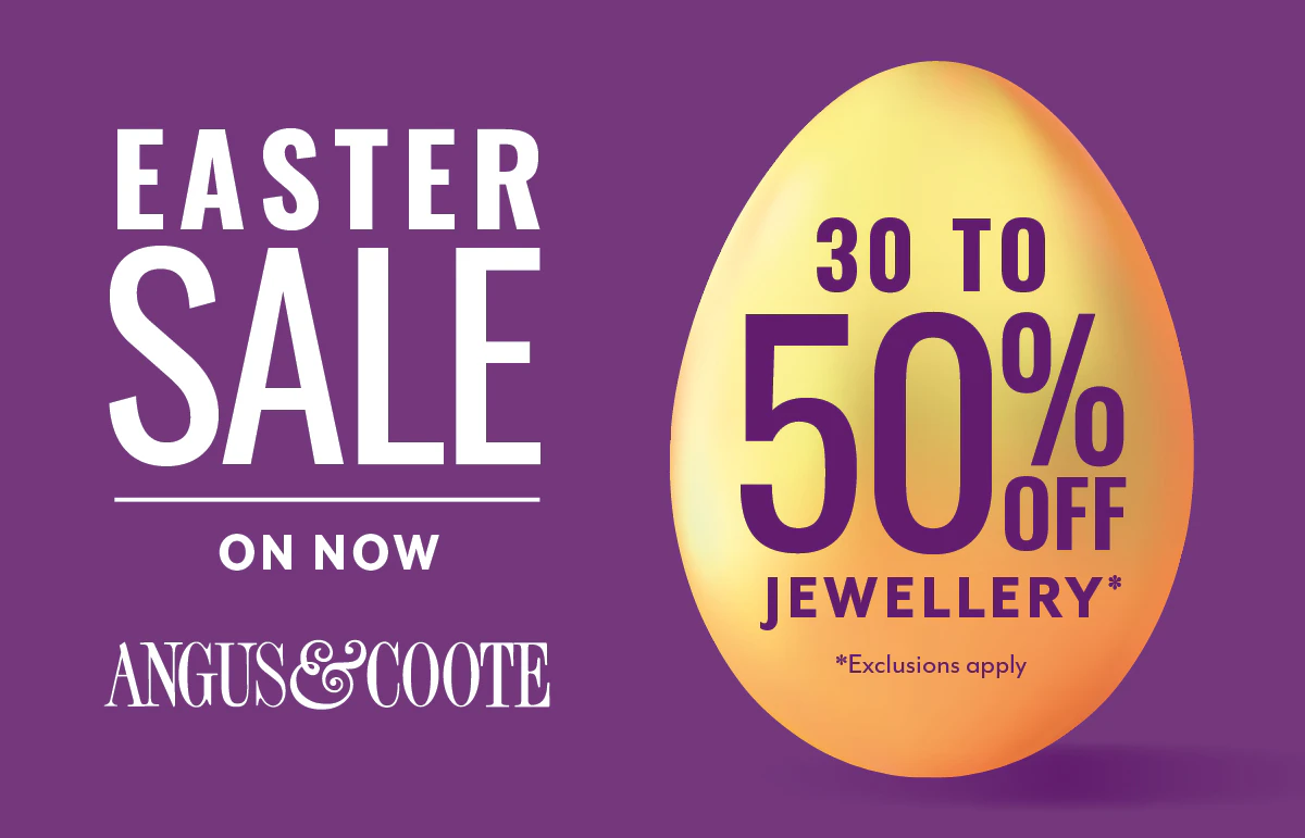 The Angus & Coote Easter Sale is on now. Enjoy sparkling savings on styles designed to elevate your everyday, with 30–50% off almost all jewellery and 20–40% off selected watches. Discover beautifully priced pieces, from timeless 9ct gold and elegant diamonds to sophisticated watches designed for every occasion. Whether you are selecting a meaningful gift or choosing something just for you, this is the perfect opportunity to secure exceptional pieces at remarkable value. Visit Angus & Coote and make the most of our Easter Sale before it ends.